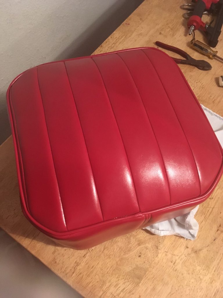 The seats have been fully removed, frames sandblasted and coated, springs repaired and new foam creating a comfortable supportive structure. New covers were patterned and created using high quality vinyl to last for years to come.